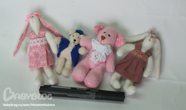 красавцы мои))))понравилось их шить)))ещё зайка такая маленькая почти сделалась)))