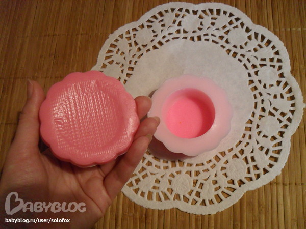 Да теперь буду искать подходящую форму. В своих запасах уже нашла парочку. Очень такой способ подходит для регионов, где нет особого разнообразия форм, да и тратить на силиконовую форму шкатулочки 700-800р, чтобы сделать 2-3 раза, тоже весьма накладно. А тут я свою форму кекс купила 2 штуки за 37 р.))) + основа+ краситель+отдушка. Тем более форма кекс часто у многих есть, просто для выпечки. Да и можно разные формы для мыла приспособить. А выбор готовых силиконовых форм для шкатулок не так уж и разнообразен.