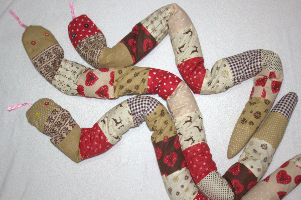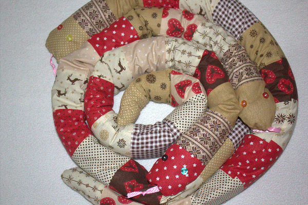 Игрушечный мир - животныеЗмейки, придуманные , расползаются все дальше и дальше :) Вот и у нас родилась тройка новогодних змеек. Наполнены гречневой шелухой из подушки. Приятно тискать их =)