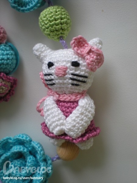 Игрушки на бусы выбраны согласно предпочтениям. Старшая обожает медведей во всех их проявлениях. Младшая тащится от котов. )))