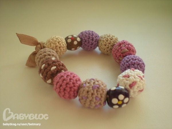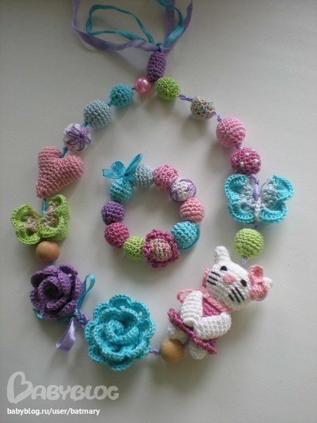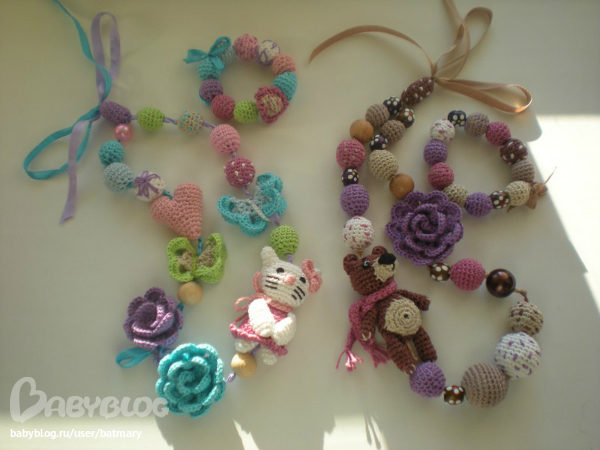 Бижутерия для слингомам. Слингобусы. Грызунки.Бросила всё и связала своим малышатам подарки на НГ. Начала вязать, когда поняла, что они наконец заинтересовались таким видом украшений. ))))