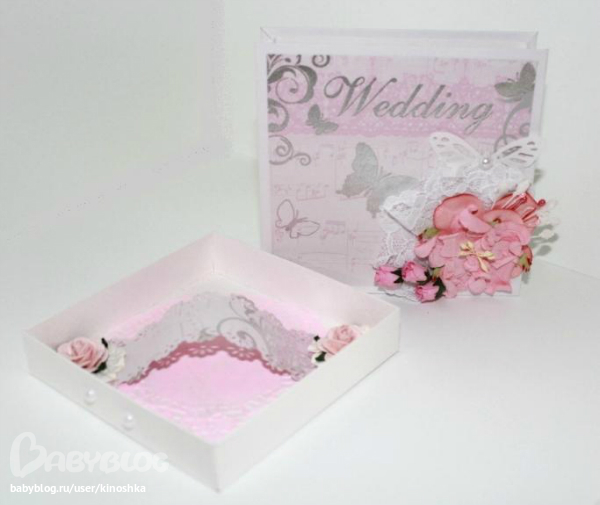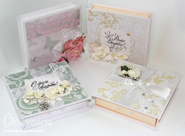 Эти коробочки (а ещё покажу и конверты) делала для свадебного салона. На этом работа моя с ним не закончена, будут ещё бонбоньерки (или как там они правильно пишутся?), пригласительные и куча свадебной утвари )))