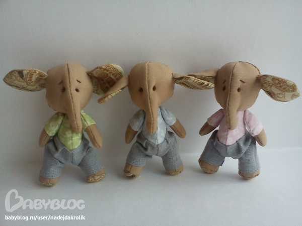Игрушечный мир - животныеВот такая семейка слоняшек пошилась на заказ. Родители 13 см, дети 9 см, сшиты полностью вручную.