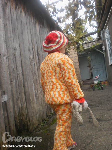 По коленочкам, конечно, видно, что вещь уже поядком поношена )))) Но в целом я очен ьдовольна качеством. Его простирнул - и все! все ниточки-столбики сразу стали на свои места!