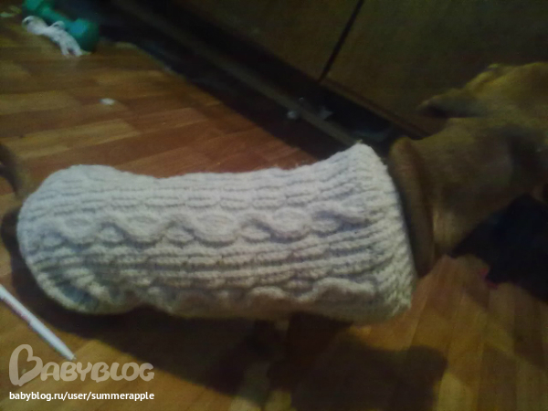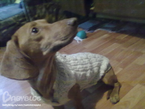 Молодец парень! Мало того, что вяжет, так еще придумал, чего бы такого оригинальненького и кому связать, а потом четко, по-мужски, об этом заявил - мол, связал, показываю! Может, он вообще специально вязать научился, чтобы таксу родную порадовать?;) Интересно, такса поняла, как ей в жизни повезло?;)))) Я раньше думала, что слово "вязать" вообще в мужском роде не употребляется, как и "родил")))))