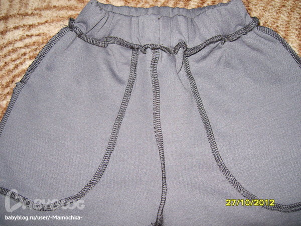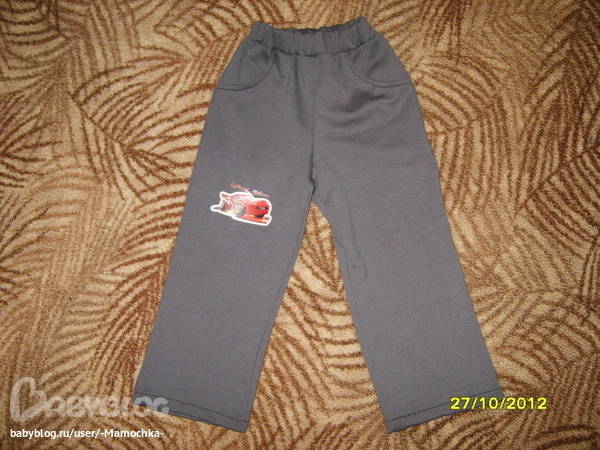 да вроде уже взрослый стал сынок, смотрю другие детишки в брючках ходят, а мой всё в шортиках на колготки. вот и пошились, ткань трикотаж.