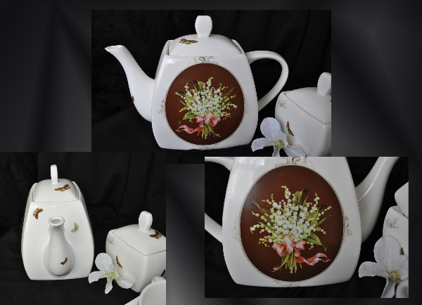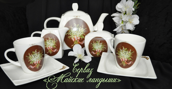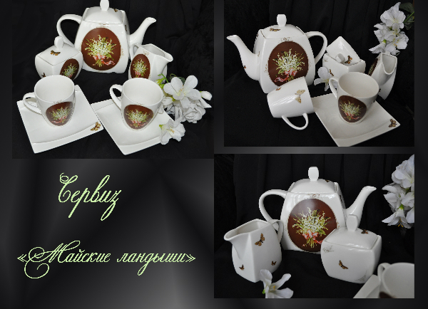 Материалы: Фарфоровый сервиз, декупажная салфетка, клей порцелан.