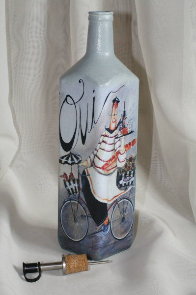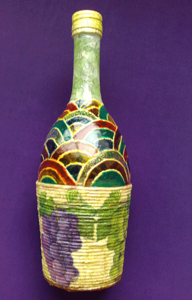 Материалы; бутылка. салфетка, контуры по стеклу, .акриловый лак, медиум FOLK AR № 4056 витражные краски
