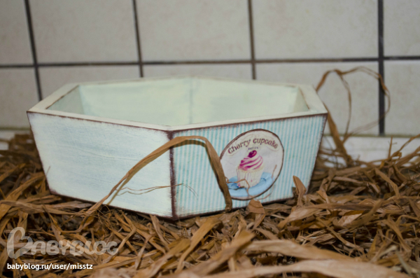 Ход работы: заготовку зашкурила, загрунтовала, приклеила салфетку, залачила, нанесла фон, тени, окантовку, трафарет, финишный слой лака.