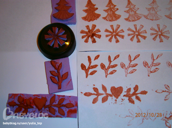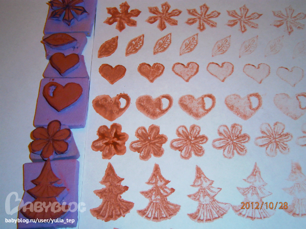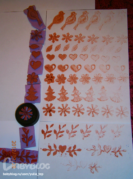 Нижний штампик (сердечко с веточками) самый первый, поэтому самый корявый.