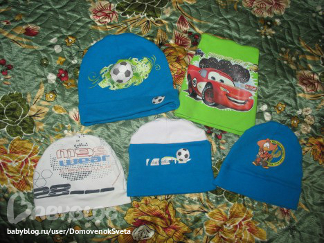 Сверху - для старшего, внизу для малого. Все шапочки из рибаны, кроме белой, тоненькой, она из футболки мужа :))))