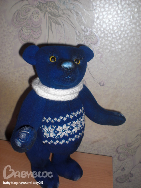 Мишка из драпа + вышивка крестиком "Норвежского орнамента"