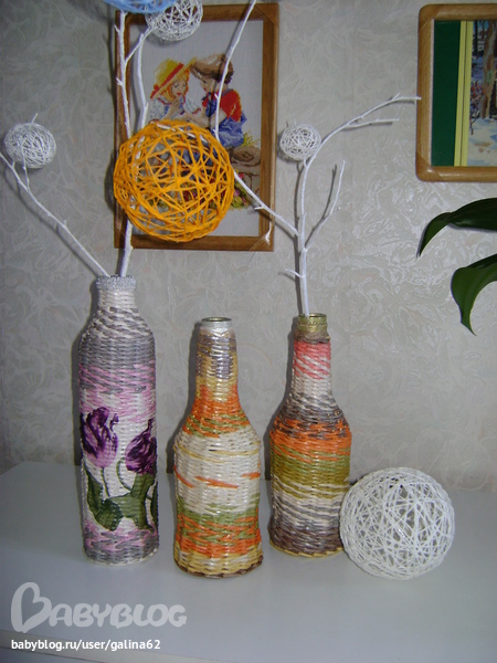 бутылочки, оплетенные бумажными трубочками