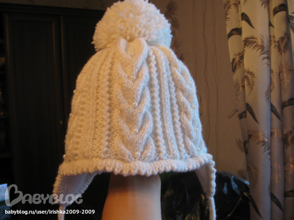 Вот здесь брала способ вязания (шапочка молочного цвета, МК) http://www.liveinternet.ru/users/sohpia/rubric/1189001/, а рисунок подлядела чуть ниже на розовой шапочке, в этой же ссылке. Только резинку делала не полую, а зубчиком уже по говотому изделию.