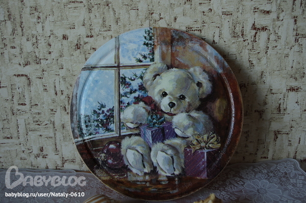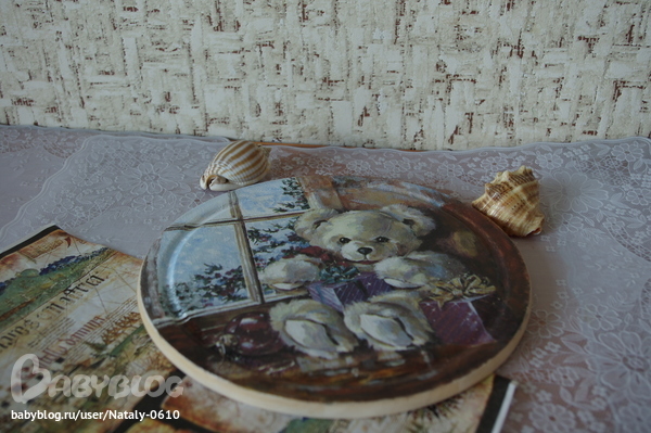 и между делом пока сушилось сделала досточку-подносик для дочи, салфетку она выбрала- громко кричала "ля-ля"