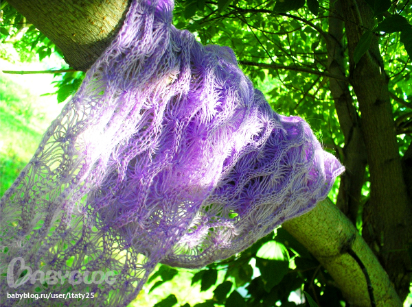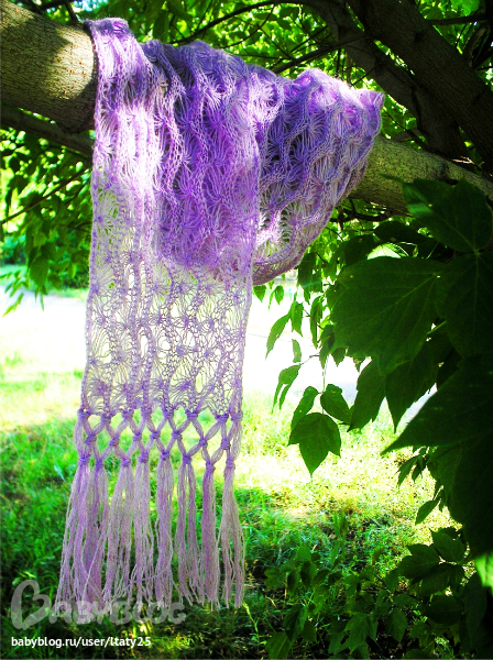 Он получился очень воздушным невесомым и мягким. На концах сделала бахрому.
