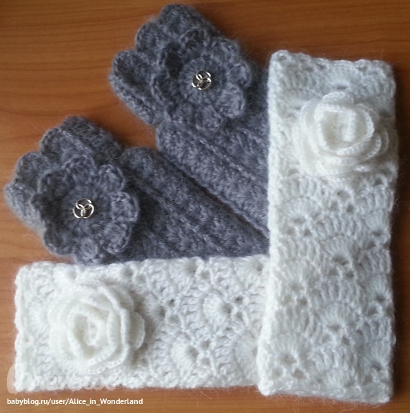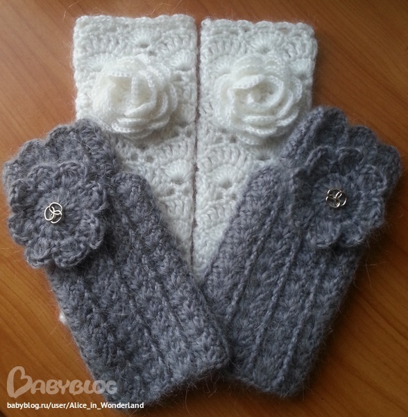 схемки нет, а если на словах, то галочка через лицевой ст. думаю в любом сборнике узоров можно найти похожее. а беленькие связаны по схемке китайской шапочки, тут в онлайне как-то давно вязали. у меня не осталось ни схемки ни ссылки, я вязала по своим митенкам. растяпа я , схемы не храню.