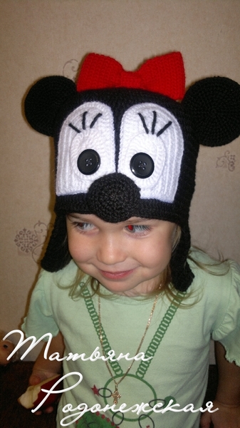 Ну когда ты успеваешь вязать? Что ни день, то новая шапочка:) Классная, сразу понятно, что Минни Маус!