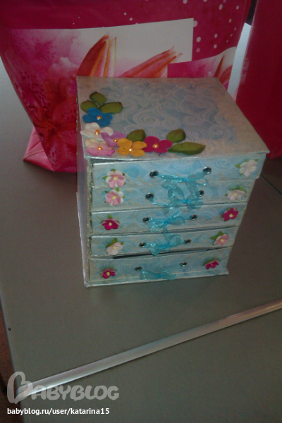 Скрапбукингвот что получилось сестренке на день рождения ,комодик первый в моец рукодельной практике , так что содержит в себе все возможные и невозможные ошибки, но в общем и целом пожалуй могу сказатьчто я довольна результатом, конечно же все что не получилось будет учтено в последующих работах,