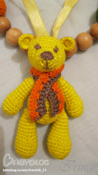 Осеннее настроение прям в них чуется))) Ир, а за что ты мишку крепишь? Голову прокалываешь и протаскиваешь ленту между рядов и петель? Или как-то по-другому?