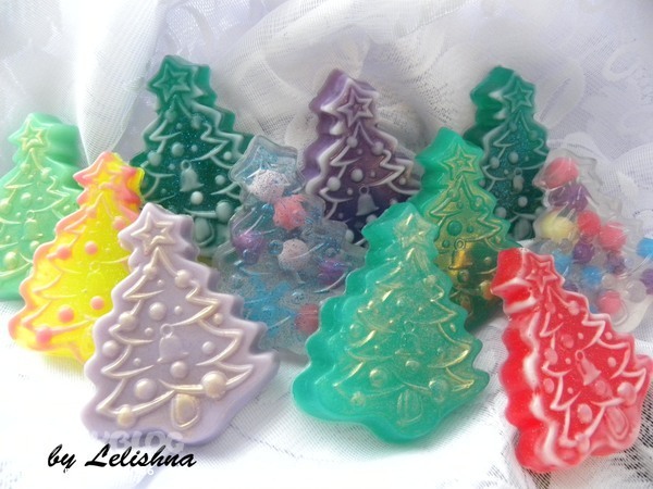Мыло и косметика своими рукамипредставляете,, целый лес елочек)))