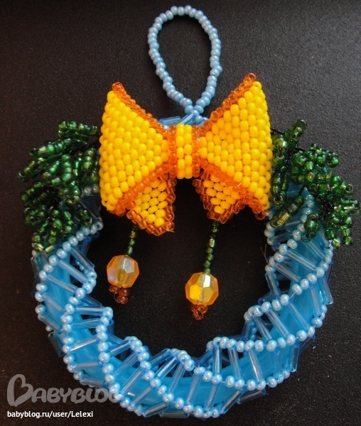 Бисер. Бисероплетение. Украшения из бисера.Такая новогодняя игрушка украшает нашу новогоднюю ёлочку.
