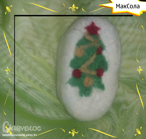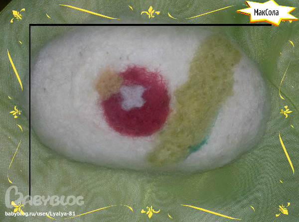 Молодец. Очень мне нравятся валяшки. Вот я тоже скоро каак научусь с картинками валяшки делать, а пока только просто валяное мыло научилась делать. А как сложно делать? Иголочкой сначала на губке, или сразу на мыле?
