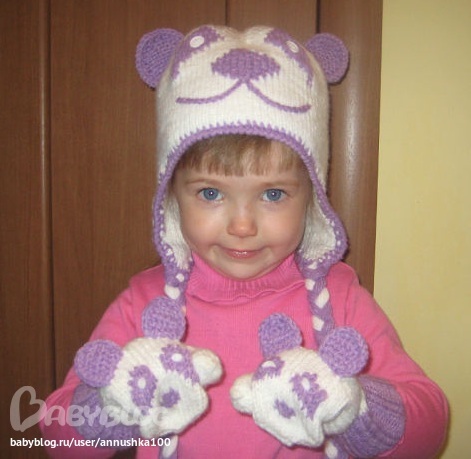 давненько ничего не показывала, совсем замоталась ( вот что значит школа началась, второй класс - это уже серьезно!!!). еще летом вязала вот такой наборчик: шапочка-панда двойная (цветовое решение - выьор заказчицы, так как сиреневый комбинезон) и варежки.
