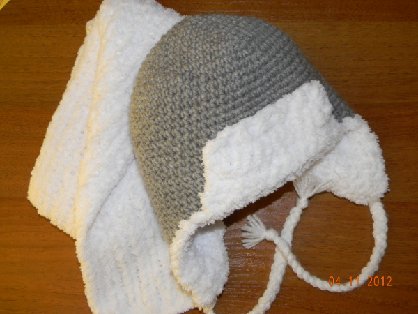 Двойная шапка для сына.получилась очень теплая))))и шарфик)