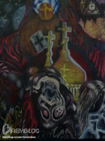 Картина не добрая, ну и не злая. Нарисована прежде всего для себя. Как бы из человека выходит.Если бы из меня такое вышло, была бы рада. Потом бы сожгла.
