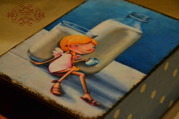 Короб "Молочная фея" крылышки феи и капелька молока объемные. Феечка ищет уютный дом.