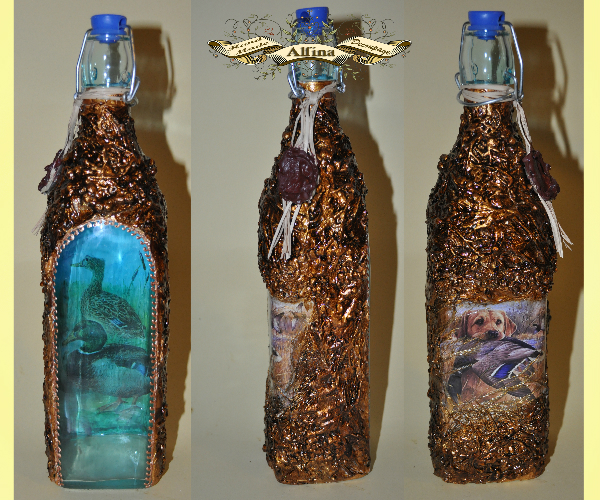 Зачетная бутылка))) нравится мне эта техника)))) она прям действительно мужская)) а чехол просто нежность)))) Альбиночка все супер)))