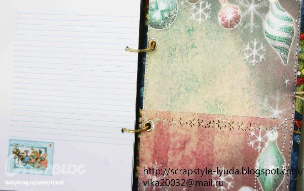 Использовала: ткань, синтепон, скрапбумагу, кружево, подвеску, вощёный шнур, пуговицу, полужемчуг.Блокнот застёгивается на резинку.Внутри налинованные листики с разными новогодними рисунками и кармашки))
