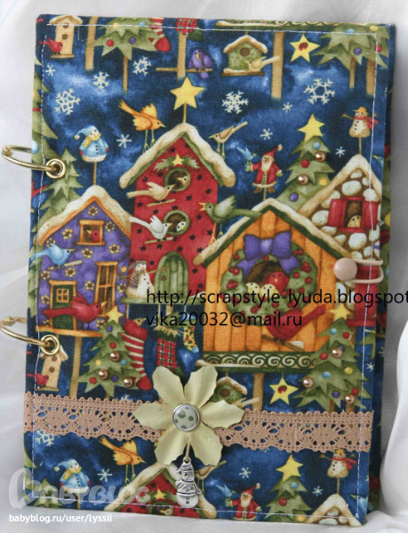 СкрапбукингДобрый день!!Как у вас идёт подготовка к Новому году?Я уже начала делать подарки)))Вот такой блокнотик сшился из прекрасной новогодней тканюшки, которую я недавно получила.