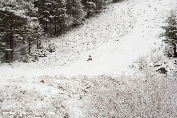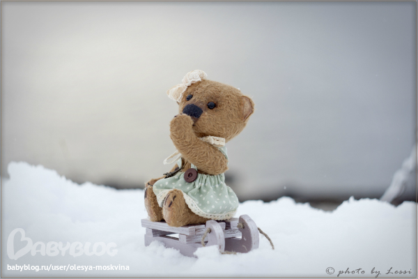 у нее мех теплый=)))Фотосессии требуют=) Во,смотри.Вчера не только мишка,но и мы катались на санках.это папа с детками катится.Я про снег.