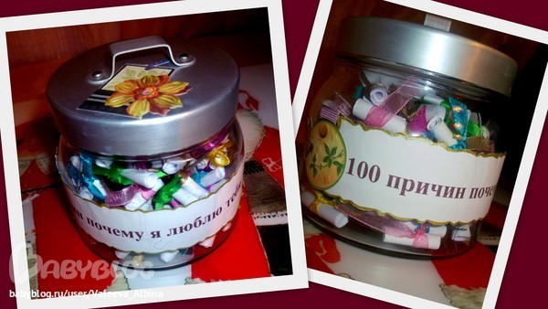 Я сама сделала!Вот!Баночка ИКЕЯ есть и побольше как на вашем фото,причины на принтере распечатала,разрезала и ленточками повязала-все просто!