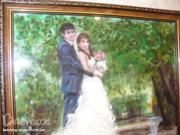 Живопись, точечная росписьКартина выполнена из шерсти по свадебной фотографии на заказ