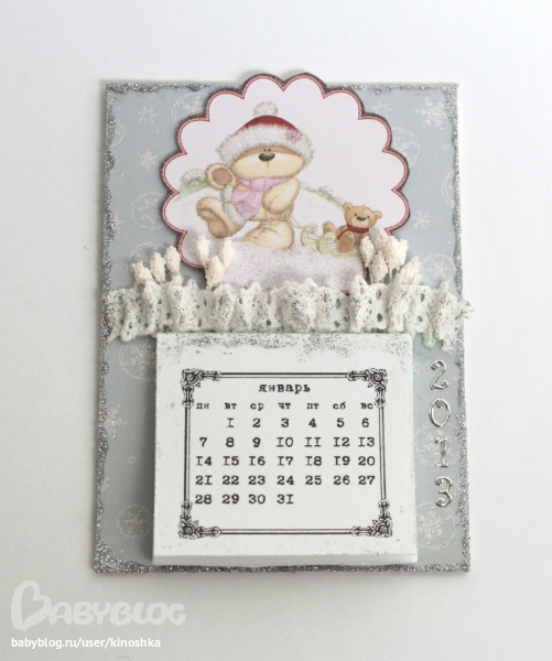 СкрапбукингА я опять сделала магнитик на холодильник. Как же они мне понравились ))))) Календарик на весь 2013 год - отрывной. Этот прямо такой новогодний припорошеный получился.