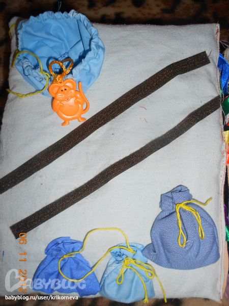 осень- листья на липучках... в итоге все можно спрятать в уголок-кармашек