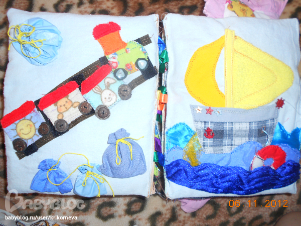 Поезд на липучке, мешочки набиты разным материалом, мягкий и сыпучий