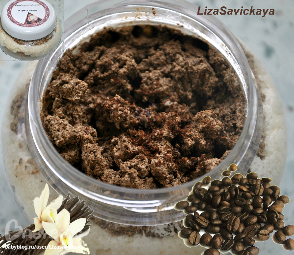 Скрабик "Кофе и ваниль".Коричневый слой-кофе,белый-ваниль.Хотя,если чесно хотелось суфле и почему-то никак не получалось((,получился жестковатый,но очень классно моиться и запах....шикарный.Девоньки,если знаете подскажите,почему?