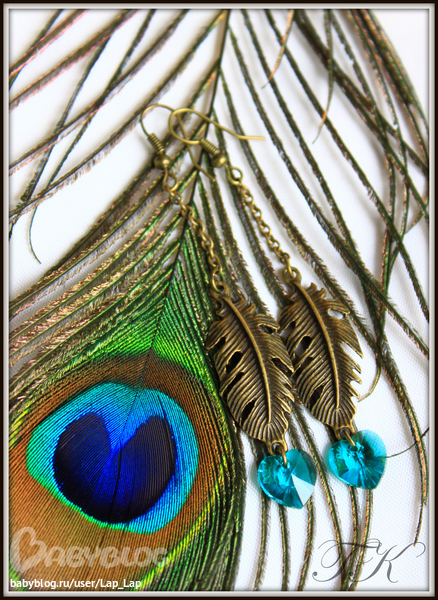 5. Серьги "Перышки" с кристаллами Swarovski, длина серег со швензой 8см