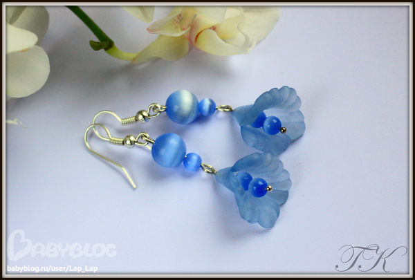 3. Серьги " Васильковые" Кошачий глаз. Имитация, фурнитура под серебро, размер со швензой 5см