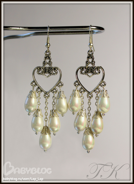 1. Серьги "Снежные" Жемчуг Майорка, фурнитура под серебро, размер со швензой 8см.