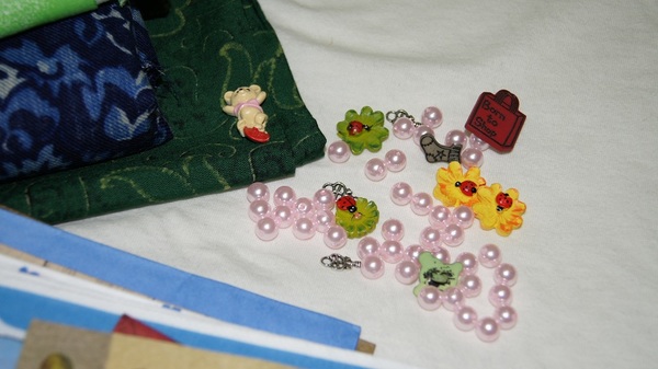 Тканюхи красивые, украшалки,бусины, ленты. И куча салфеток и заготовочка для декупажа. Спасибо большое!!!!