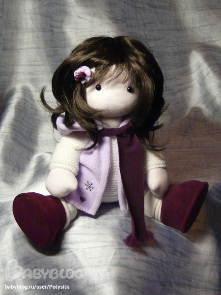 ой, здоровская какая! очень мне ваша кукла понравилась, дочке сразу захотелось первую куклу такого плана :) а то я все говорливые магазиные смотрю, а эта как-то теплее, больше подходит на роль первой любимицы!
