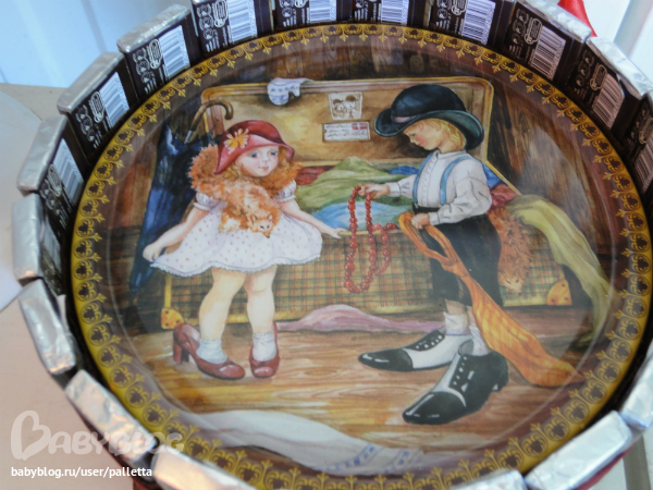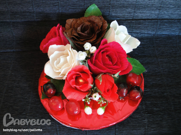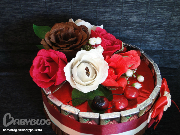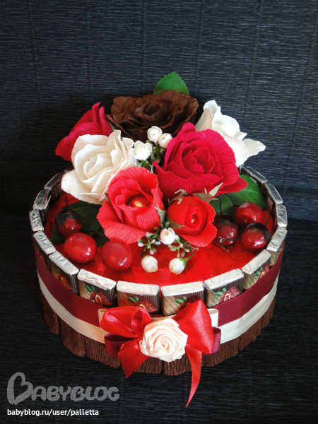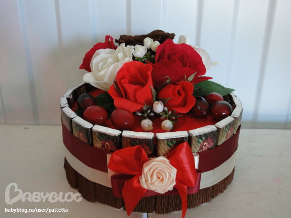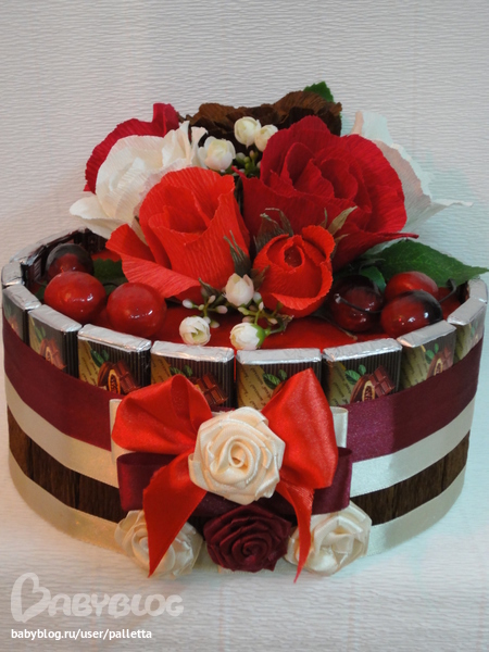 Немного переделала.Добавила ленту на нижний край торта, так , на мой взгляд ,аккуратнее.