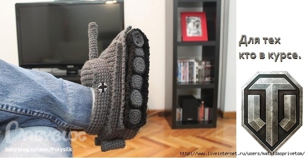 какие класные!!! у меня муж и сын тоже танками увлекаются, можно схемку последних тапочек?