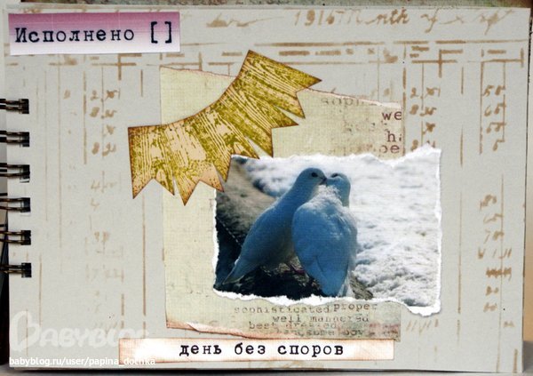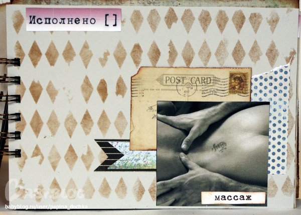 у меня специальный инструмент для состаривания от Prima, им поковырялась по краю страницы, и тёркой потёрля край бумаги, чтобы она немного содралась.