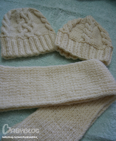 Связались две шапочки к одному шарфику , первую вязала из головы, вторую по описанию. И вот что получилось :) Качество фото не очень извините, сынок помогал !
